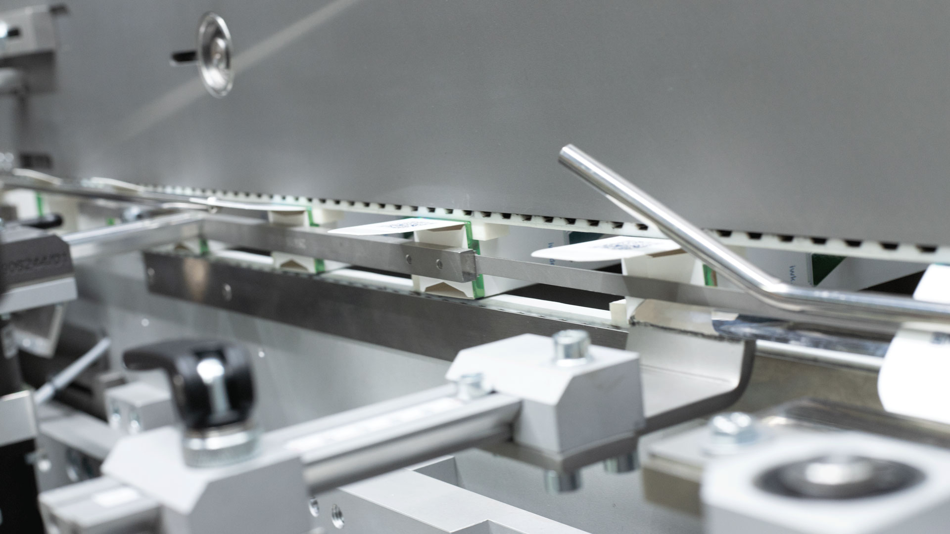 Ein schonender Faltschachteltransport durch Zahn­riemen­bänder und präzise 4-Ebenen-Positio­nierung sichern beim CH 4 den Faltschachtel­transport und sorgen für kratzfreie, unbeschädigte Verpackungen vom ersten bis zum letzten Schritt.