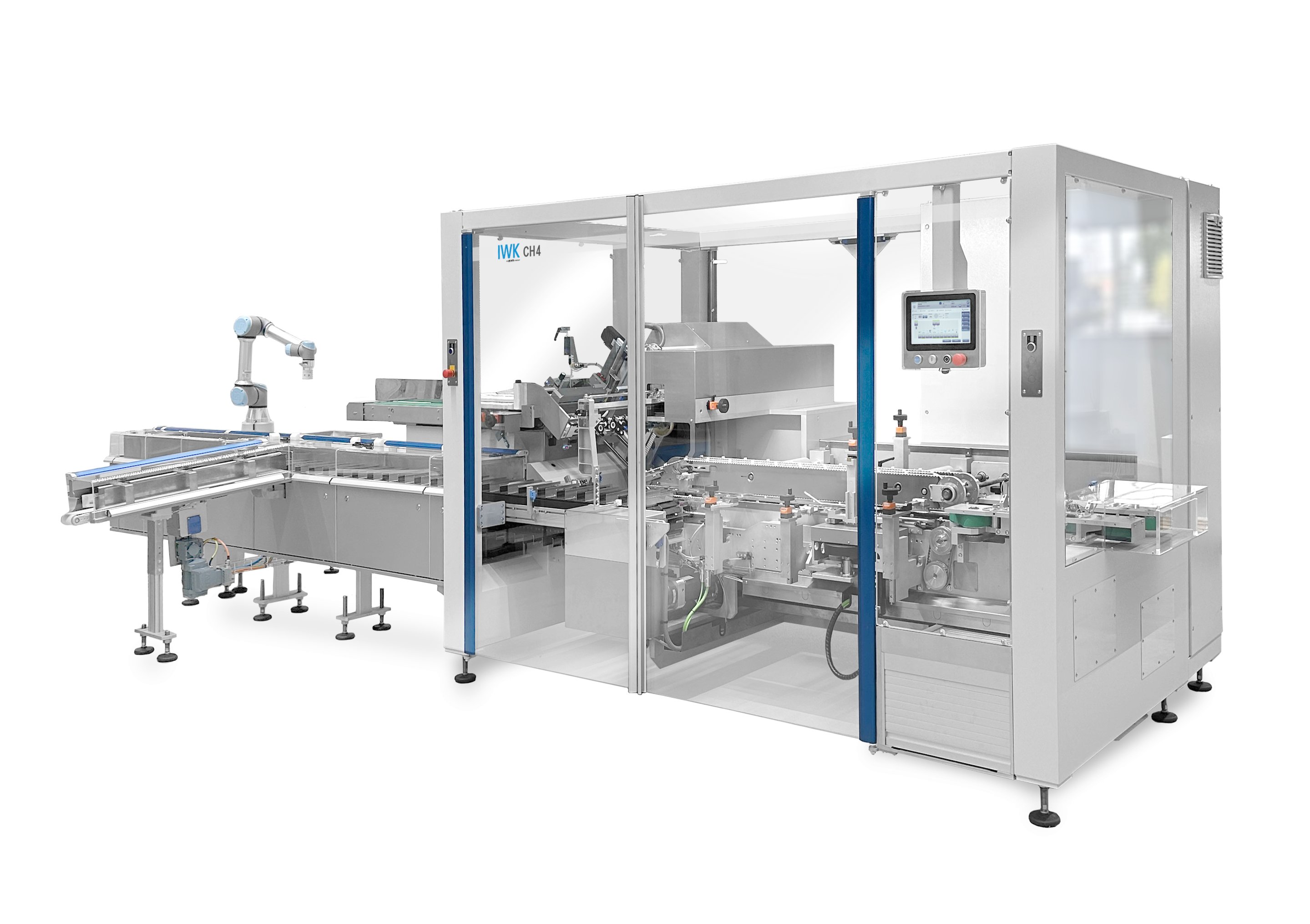 IWK Verpackungstechnik bietet mit dem neuen Horizontalkartonierer CH 4 sicheres, zuverlässiges Produkthandling in kontinuierlicher (120 T/Min) oder intermittierender (80 T/Min) Produktzuführung. Der Kartonierer verfügt über ein Rekuperationssystem der Servoantriebe für maximale Kosteneffizienz bei minimalem Energieeinsatz. Die präzise Faltschachtelpositionierung und die kompakte Bauweise sorgen für höchste Qualität und Flexibilität bei Pharma- und Kosmetikanwendungen.