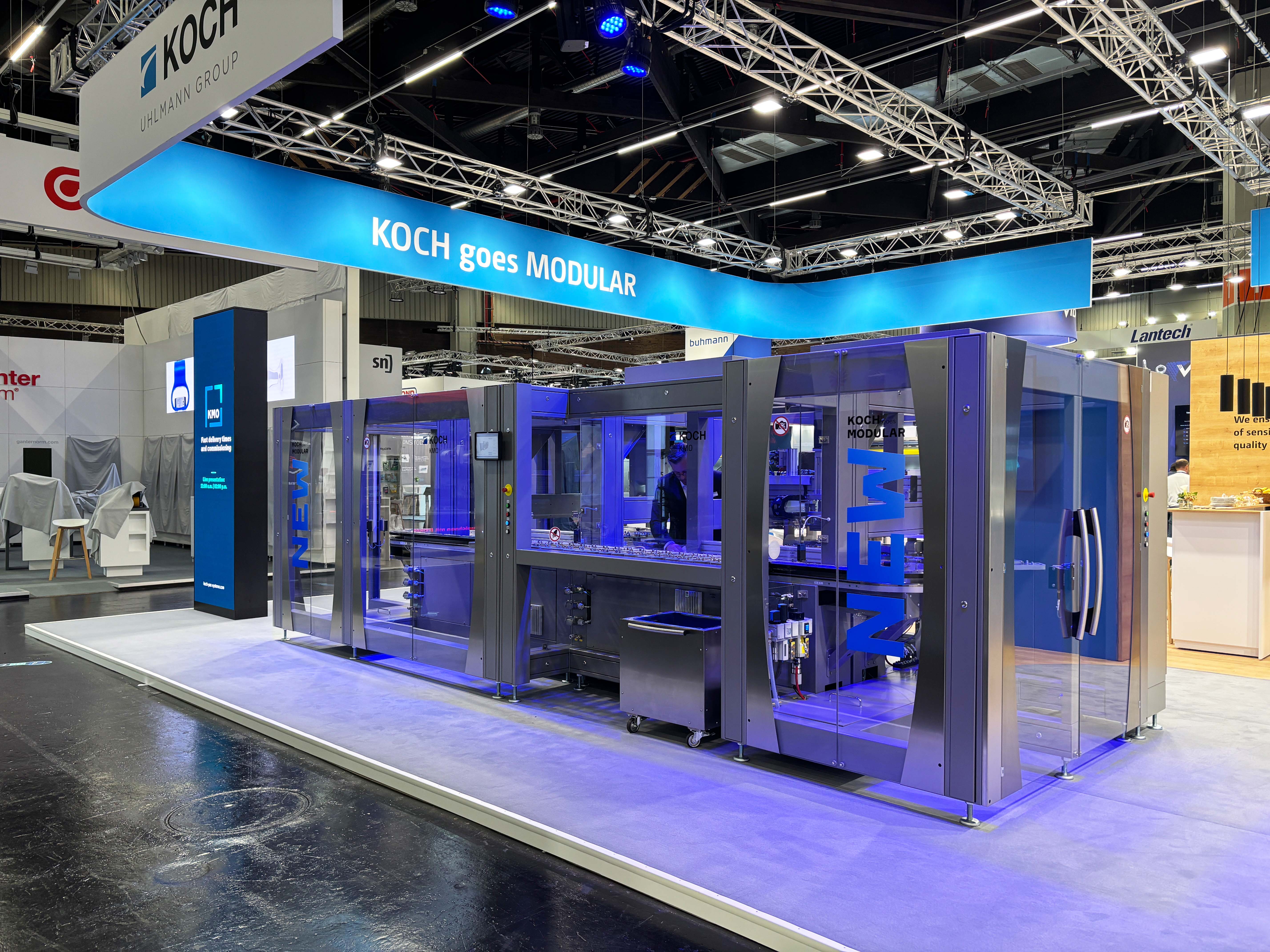Koch Pac-Systeme zeigt, wie flexibel sich das modulare Konzept in Richtung integrierte Faltschachtel-Verarbeitung weiterentwickeln lässt. Mit der Einführung der Maschine KMO setzt man auf eine Lösung, die Flexibilität und Wirtschaftlichkeit vereint. Dank standardisierter Schnittstellen passt sich die Maschine schnell neuen Marktanforderungen an, etwa durch flexible Prozesserweiterungen, schnelle Modulwechsel oder eine reibungslose Inbetriebnahme. Die Maschine verarbeitet nun auch Faltschachteln aus Karton. Diese Verpackungsform gewinnt durch hohe Rezyklierbarkeit, Materialeffizienz und zuverlässigen Produktschutz weiter an Bedeutung. Der horizontale Kartonierprozess mit seitlichem Produkteinschub ermöglicht eine prozesssichere und vollständig automatisierte Verarbeitung.