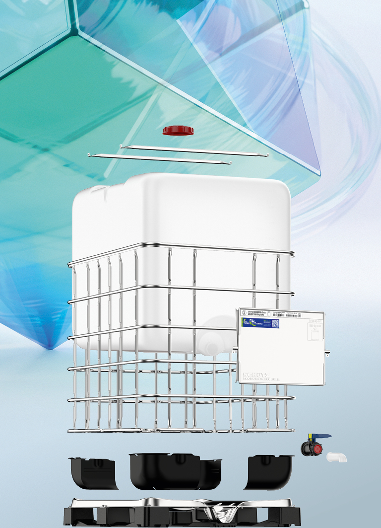 Unter dem Prinzip „Circular by Design“ entstehen bei Schütz Verpackungslösungen, bei denen Kreislauffähigkeit von der Entwicklung an integraler Bestandteil ist. Gefertigt werden robuste, langlebige und materialsparende Systeme, die sich sicher einsetzen, zuverlässig wiederverwenden und am Ende ihres Lebenszyklus hochwertig recyceln lassen. Dafür ist eine stetige Optimierung aller Komponenten – vom Innenbehälter über den Gitterkäfig bis hin zu Paletten und Komponenten wichtig.
