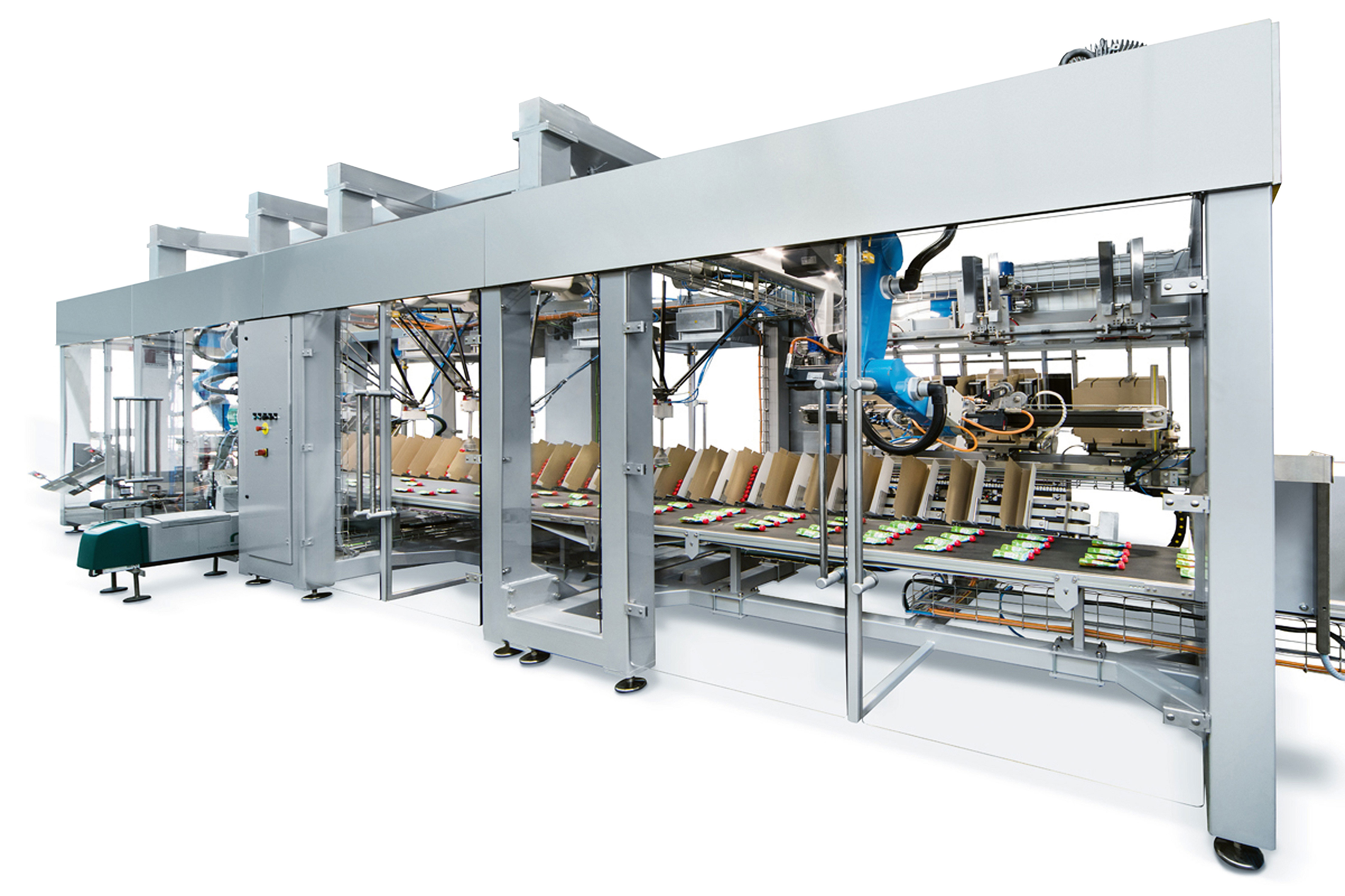 Die Anlage ist so konzipiert, dass sie sich flexibel an unterschiedliche Produktgrößen und Verpackungsarten anpassen lässt (im Bild Beispielanlage mit Beuteln). Dies soll es Herstellern ermöglichen, schnell auf Markttrends zu reagieren und neue Produkte oder Varianten schnell auf den Markt zu bringen, ohne in zusätzliche Ausrüstung investieren zu müssen.