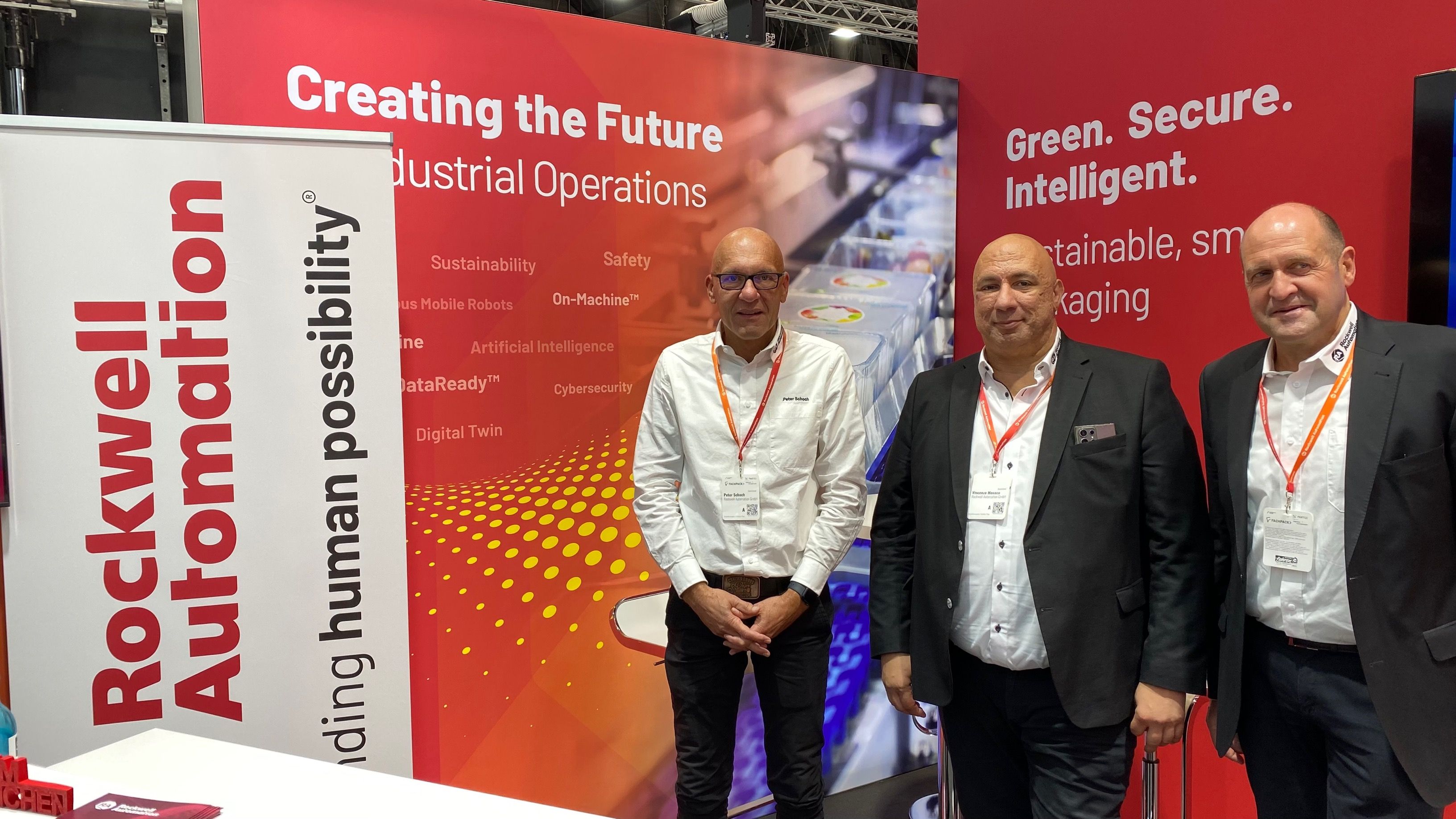 Rockwell Automation bringt als Spezialist für Automation die Themen AI und Cybersecurity an Maschinenbauer und Endkunden. Dafür lohne sich die Fachpack, so Uwe Küppers (rechts): „Wir nehmen den Maschinenbauer an die Hand und gehen mit ihm zum Endkunden oder umgekehrt."