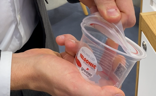 Telsonic hat jetzt die Möglichkeit, pealbare Deckel per Ultraschall auf Becher zu befestigen (siehe Bild unten). Natürlich auch monomaterialfähig und druckfarbenschonend.